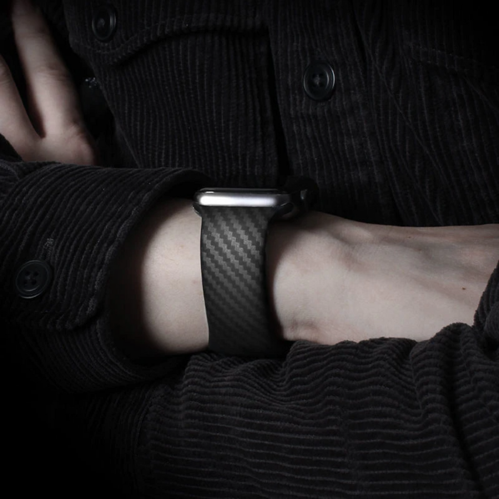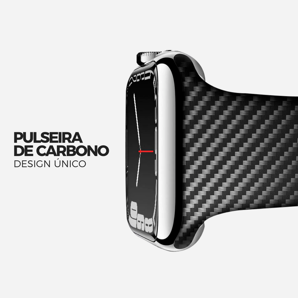 Feita de fibra de carbono de grau aeroespacial, oferece estilo e design mordeno, uma pulseira única e exclusiva para o seu Apple Watch.